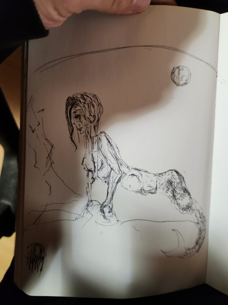 Started with a firefly generated image for inspiration and basic outline/idea model for the sketch.