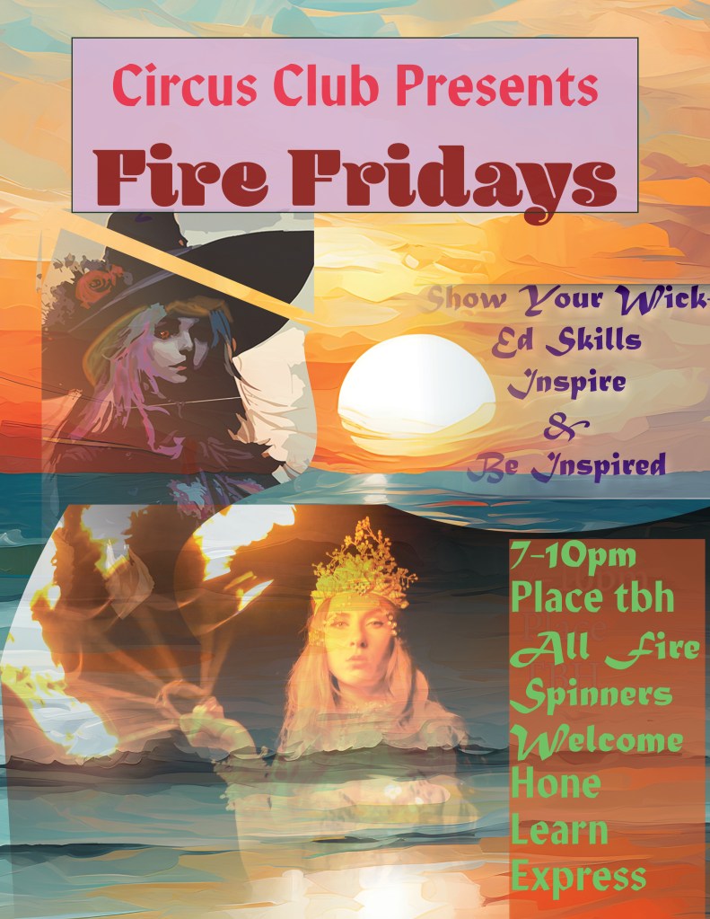 Project title: Fire Friday FlierBrief description: Flier to promote firefridays!Date Oct-25-2023Programs Used: Indesign, AI, PSBlending images, taking pixel to vectorin illustrator then modding, recoloring,setting up fliers in ID.